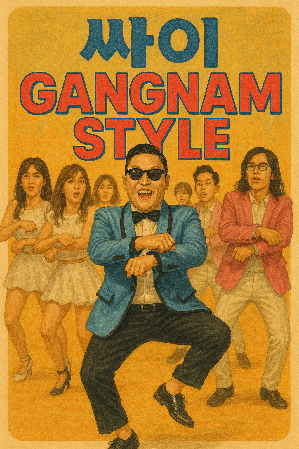 Yes! Gangnam style music video is a colorful, surreal, and highly energetic satire of South Korean high society, specifically targeting the wealthy and fashionable residents of Seoul's Gangnam district. The video follows Cy as he dances in a wide variety of absurd and exaggerated settings like a beach, a playground, a luxury stable, subway station, parking garage, all while performing the now iconic horse dance. Despite the lavish backdrops and flashy outfits, everything portrayed is in a intentionally ridiculous and over-the-top way, highlighting how artificial the glamorous lifestyle can be. Sy is joined by a variety of quirky characters, including a young boy, aka Little Cy, showing off his slick dance moves. A man in a cowboy hat doing pelvic thrust in an elevator. And Hyuna, a K-pop star who flirts with Cy in a subway car.